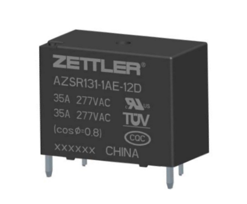 Zettler Introduces the 35 AMP Miniature Power Relay AZ SR131 for Solar Applications.The new AZ SR131 miniature power solar relay series are capable of switching up to 35 A at 277 VAC. Coil voltages range from 5 up to 48 VDC. The relay is designed for the use in solar inverter applications according IEC 62109 but can be used in many other applications as well.