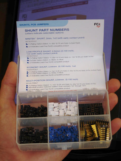 ETTERS, PA (November 28, 2006) — FCI, a leading developer of connectors and interconnect systems, is offering a shunt developer’s kit. The kit includes a number of shunts, with varying dimensions, platings and mechanical features to support many applications. This variety of shunts provides design flexibility with 2mm, 2.54mm, and multi-position pitch options, as well as mechanical, plating, color and low-cost options.