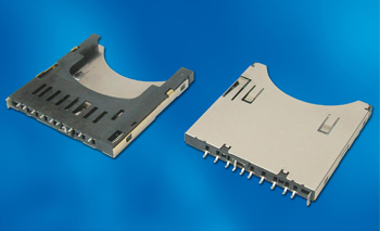 The SD-card connectors meet the required specification for automotive electronics applications, operating in a temperature range of -40ºC to +105ºC with 12,000 mating cycles.
