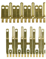 The flat BGB/BGMT Blades are front loaded for overmolding, while the 7-Shape BGB Blades are side loaded for overmolding due to their profile. Both BGB and BGMT Blades feature a unique folded, double-seam Ground Pin design.