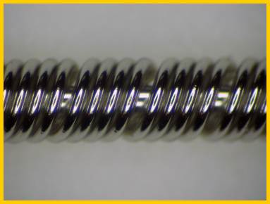 Small wires >0.001" (1mil) diameter wrapped around a core using high angle serve technology achieving a continuous length coil.