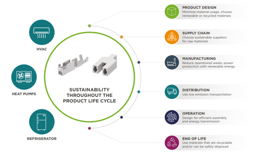 TE Connectivity is dedicated to using sustainable materials in its product designs to reduce its carbon footprint.